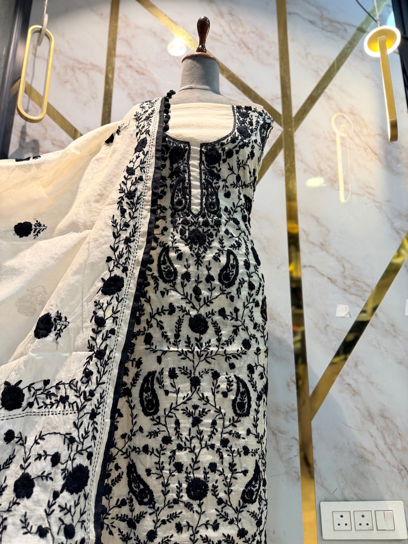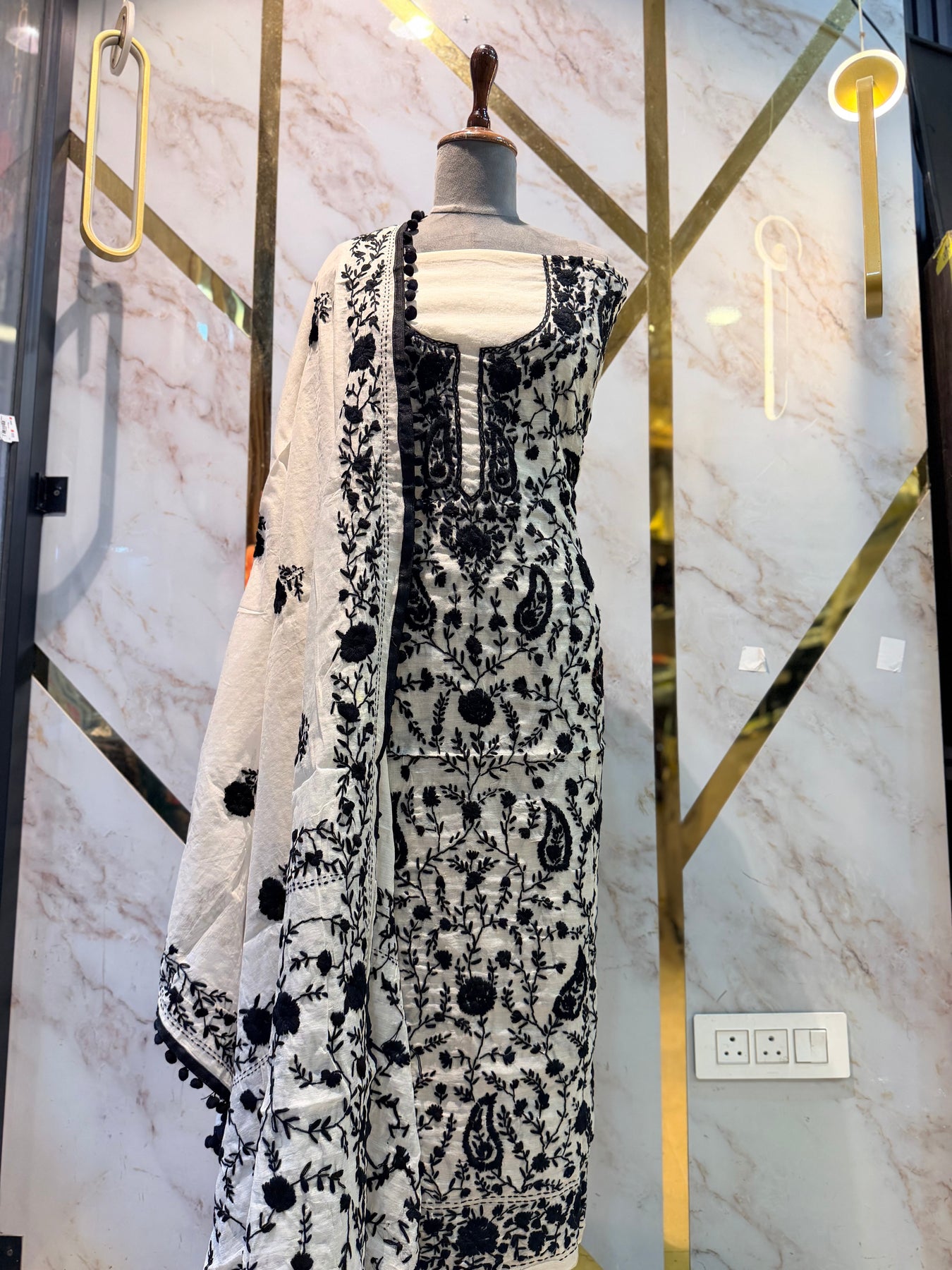 Experience elegance with this premium kantha work modal silk suit, crafted for those who appreciate fine artistry and comfort. The delicate kantha embroidery enhances the luxurious modal silk fabric, offering a lightweight and breathable feel ideal for sophisticated occasions. This suit combines traditional craftsmanship with modern fabric technology, ensuring durability and a graceful drape that flatters every silhouette. Perfect for formal events or festive gatherings, it delivers timeless style with expert detailing.