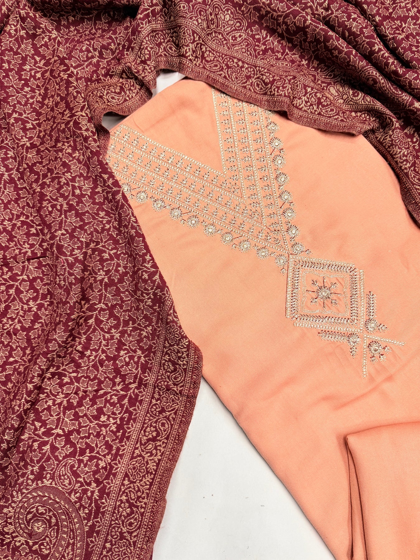 shirt :-  48inch(approx)Bottom:-2.60mtr. (approx) Shawl:-2.25mtr(approx).