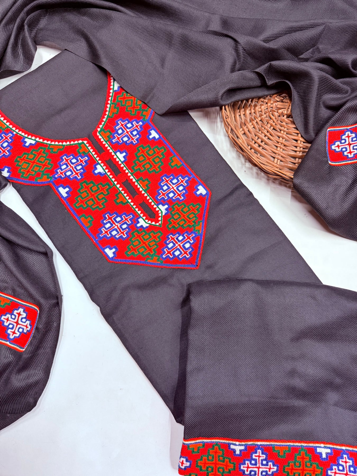 Embrace the warmth and heritage of Himachal Pradesh with this budget-friendly Kinnauri suit, expertly crafted for the winter season. Featuring traditional Kinnauri weaving techniques, this ensemble combines authentic cultural design with practical comfort for cold weather wear. The natural fabric provides excellent insulation while maintaining breathability, making it ideal for layering during harsh winters. Perfect for those seeking genuine ethnic wear without premium pricing, this suit celebrates regional craftsmanship while keeping you cozy throughout the season.