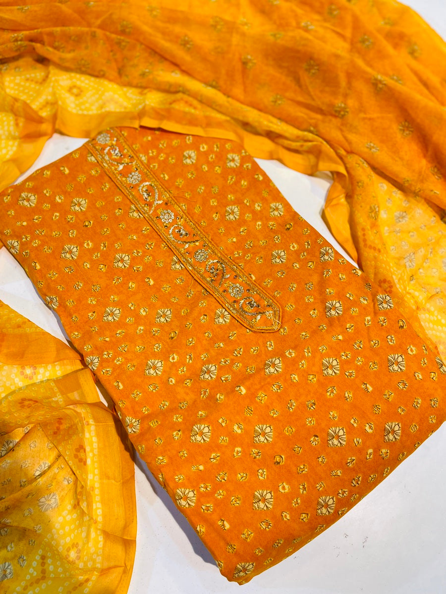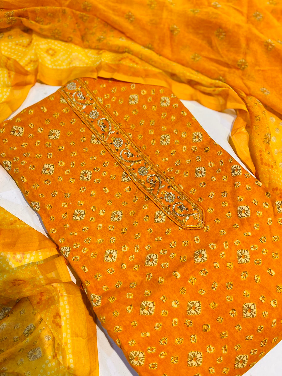Jaipuri print Bandhej suit