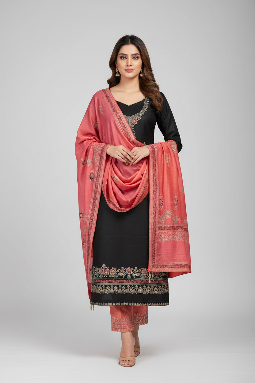 shirt :-  48inch(approx)Bottom:-2.60mtr. (approx) Shawl:-2.25mtr(approx).