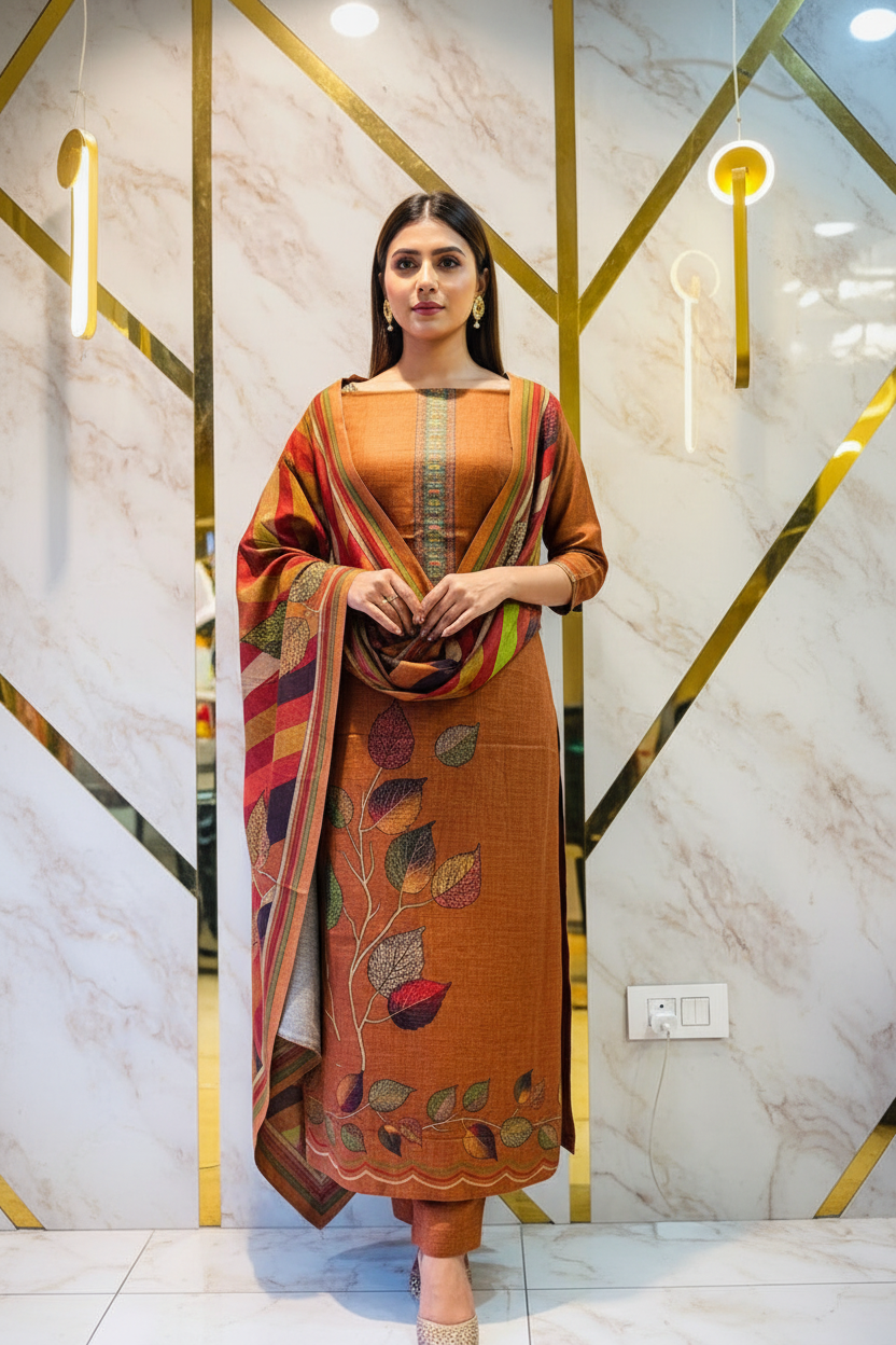 Our Premium PASHMINA kani Suit is made in India with the highest grade of Pashima fabric. This luxurious fabric is a perfect blend of wool and silk, giving you an incredibly soft and comfortable fit. Our suit is soft to the touch, light in weight, and warm in temperature. Unparalleled luxury awaits you with this one-of-a-kind suit.