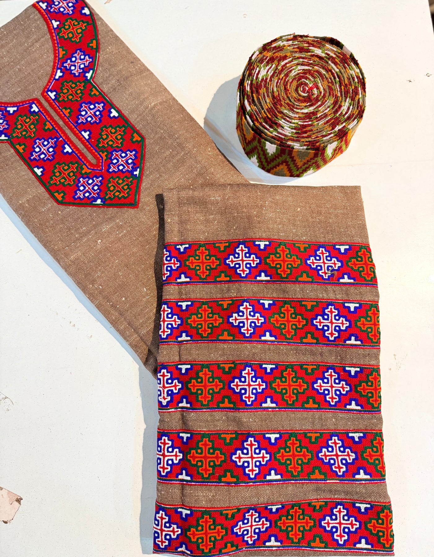 This Pure winter Kinnauri suit is handmade from high-quality fabrics, making it both durable and stylish. Its unique design offers maximum warmth in cold weather conditions, with timeless appeal. Crafted with care and attention by experts, this suit is a perfect choice when you need to dress with confidence for any occasion.