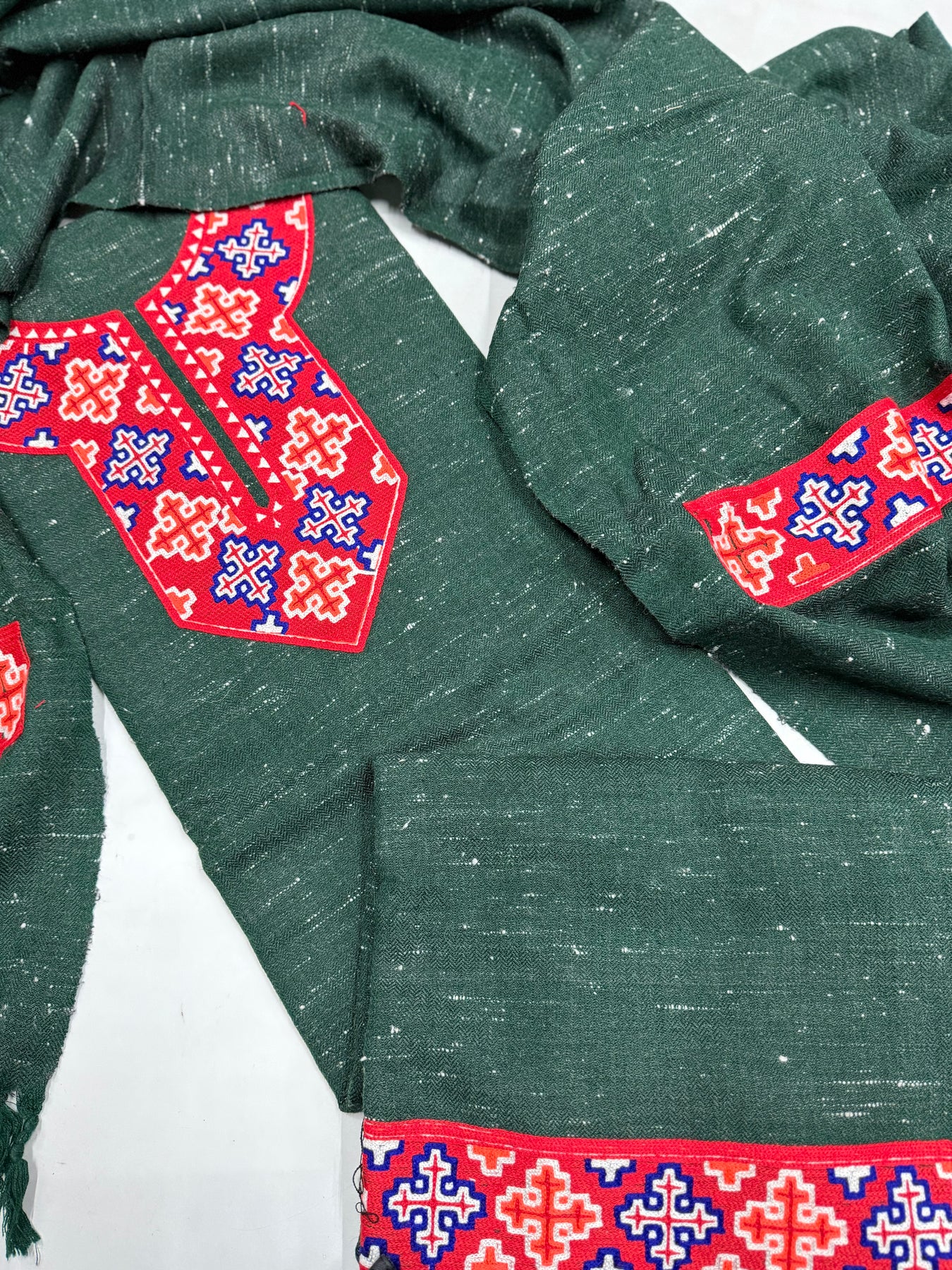 This Pure winter Kinnauri suit is handmade from high-quality fabrics, making it both durable and stylish. Its unique design offers maximum warmth in cold weather conditions, with timeless appeal. Crafted with care and attention by experts, this suit is a perfect choice when you need to dress with confidence for any occasion.