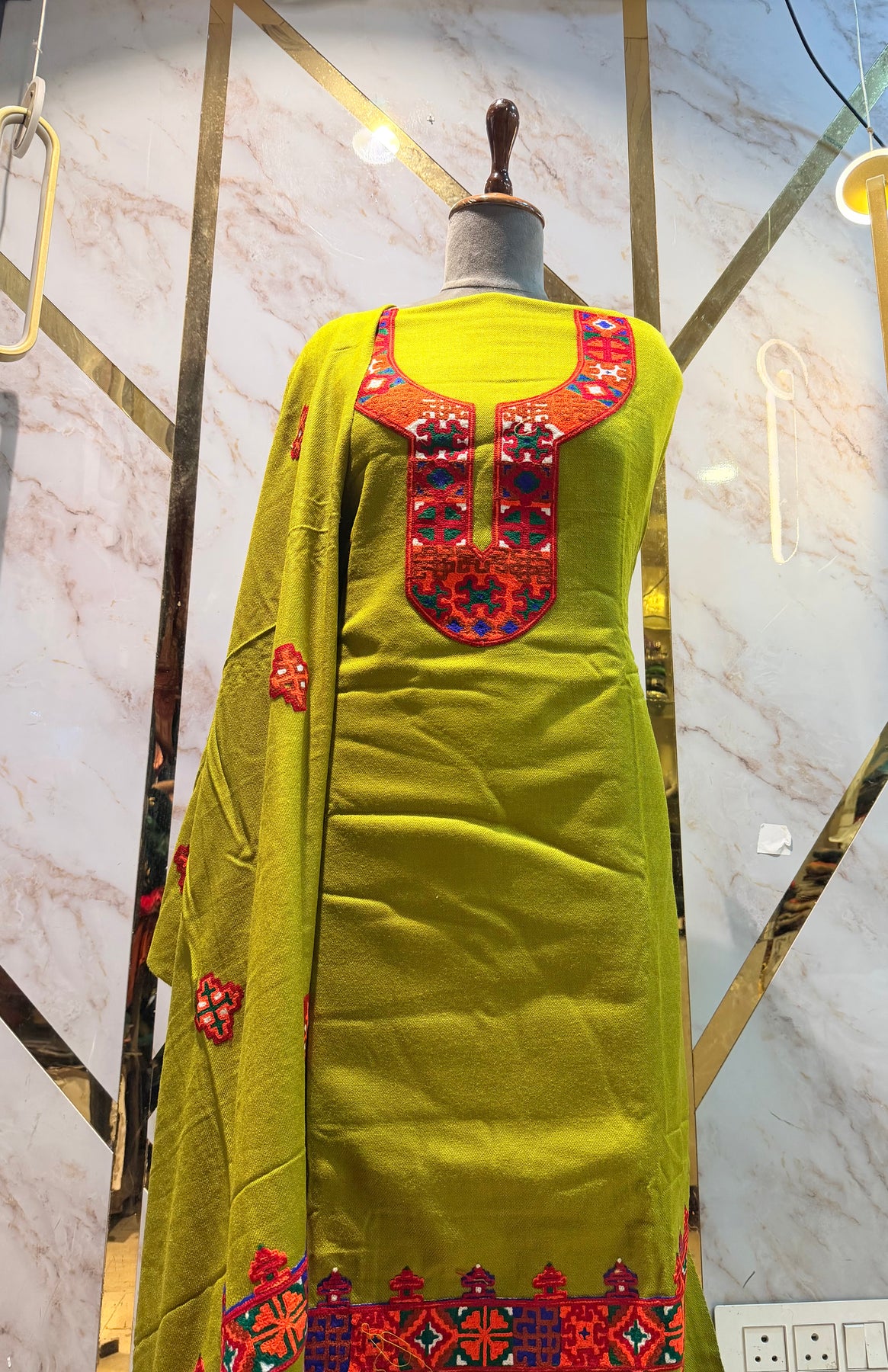 beautiful hand made embroidery 🧵 bottom:-all over Stoll :-Woolen with hand made embroidery 🧵
