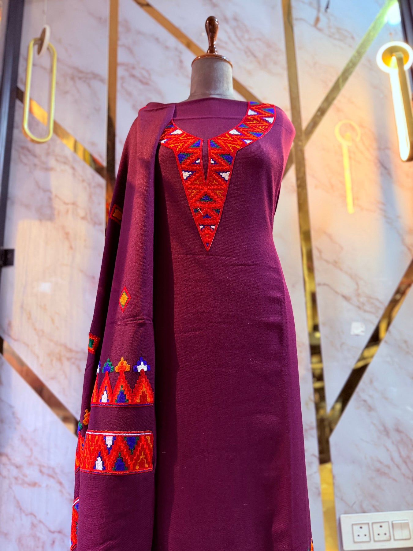 This Pure winter Kinnauri suit is handmade from high-quality fabrics, making it both durable and stylish. Its unique design offers maximum warmth in cold weather conditions, with timeless appeal. Crafted with care and attention by experts, this suit is a perfect choice when you need to dress with confidence for any occasion.
