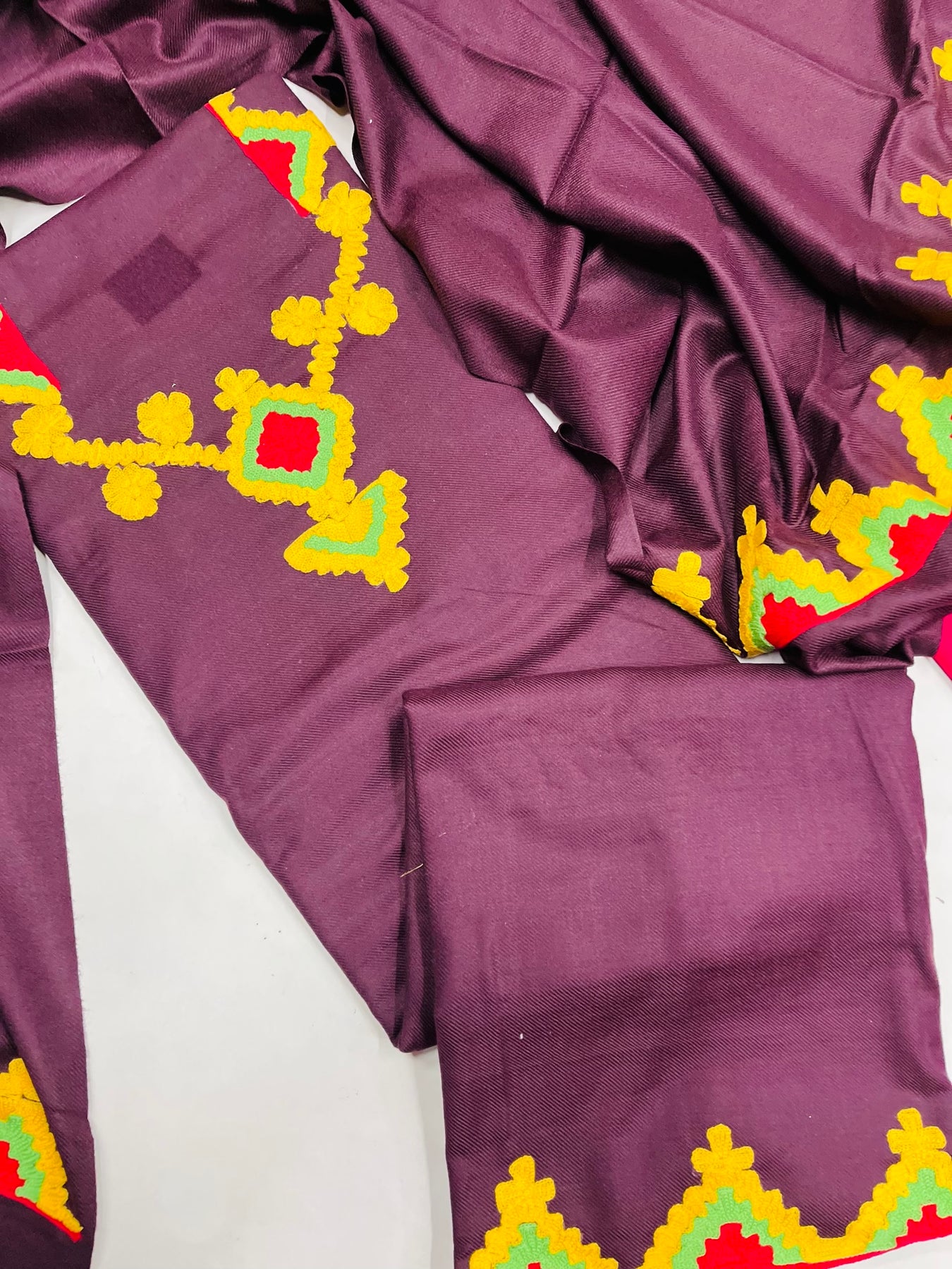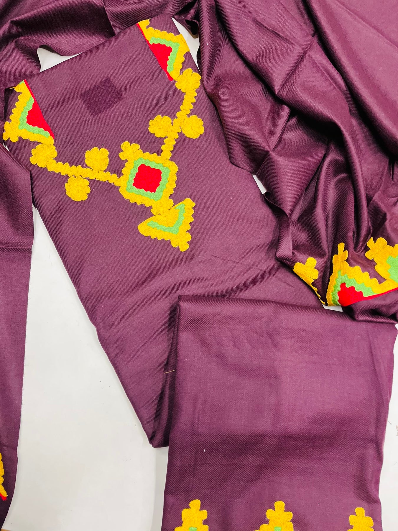 beautiful hand made embroidery 🧵 bottom:-all over Stoll :-Woolen with hand made embroidery 🧵