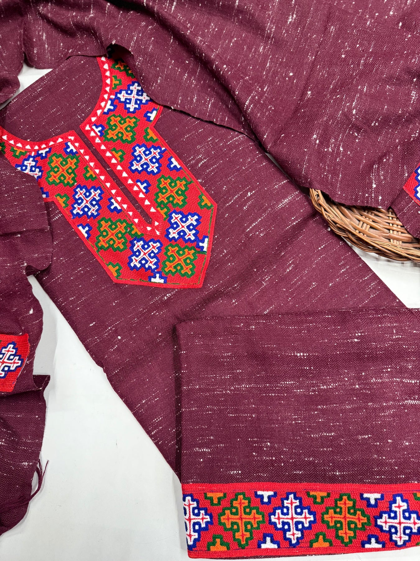 This Pure winter Kinnauri suit is handmade from high-quality fabrics, making it both durable and stylish. Its unique design offers maximum warmth in cold weather conditions, with timeless appeal. Crafted with care and attention by experts, this suit is a perfect choice when you need to dress with confidence for any occasion.