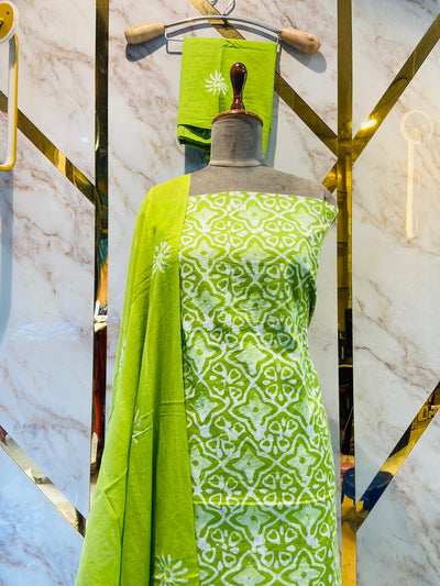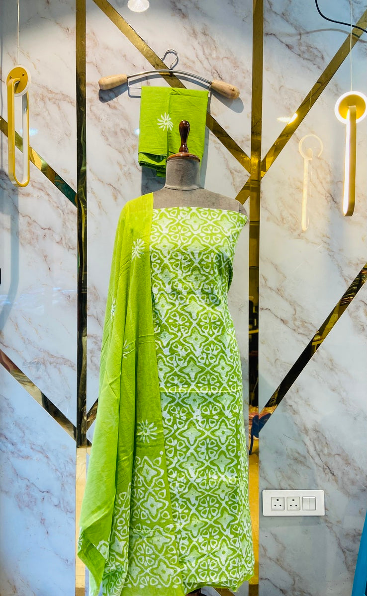 Crafted from high-quality cotton with a unique vatik print, our Premium cotton suits offer both luxury and style. The intricate print adds a touch of elegance to any outfit, perfect for any occasion. Elevate your wardrobe and make a statement with our premium suits.