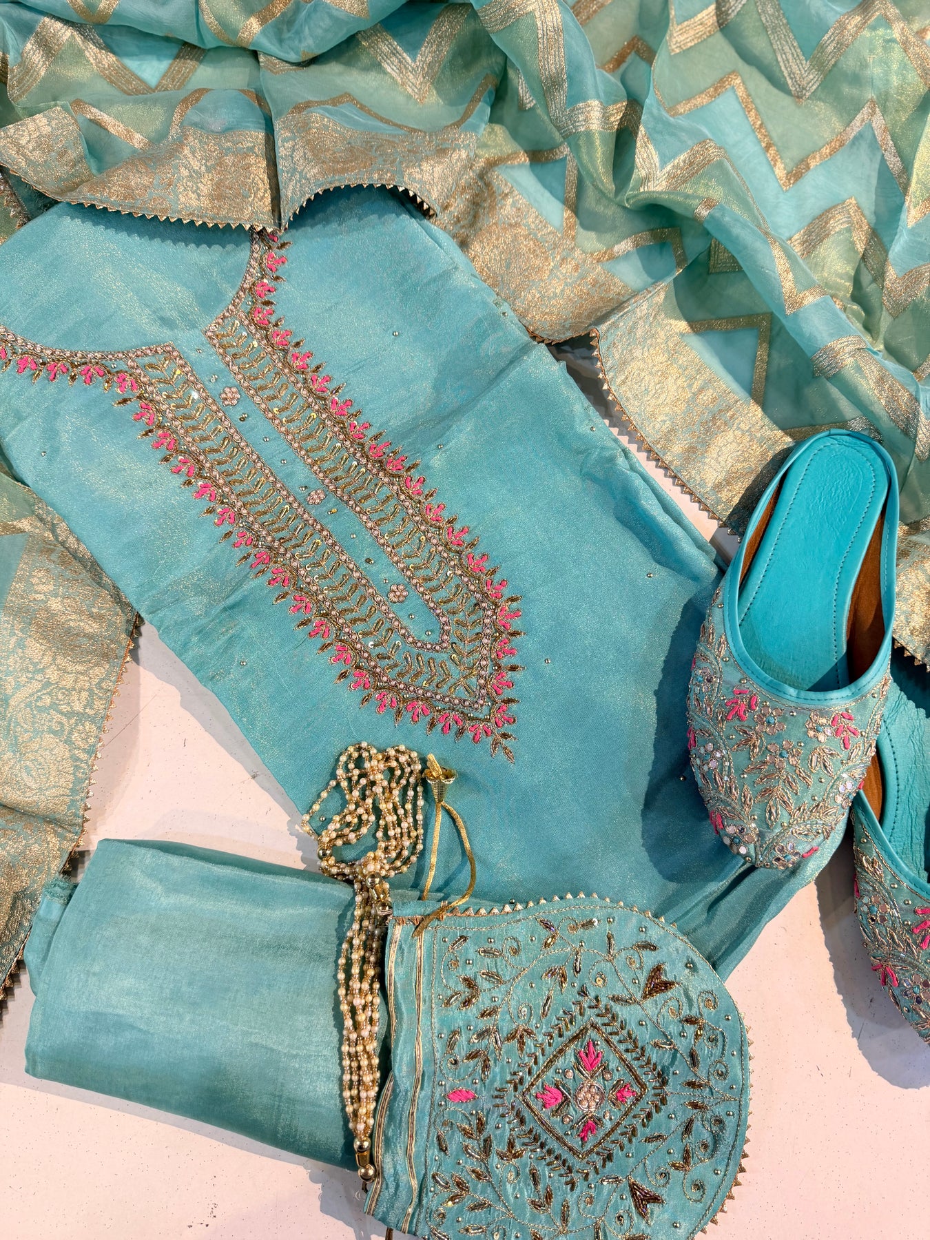 Elevate your celebration style with this sophisticated party ensemble. This premium collection combines an exquisitely crafted potli suit with coordinated footwear, designed for the discerning guest. The potli detailing adds refined elegance to traditional silhouettes, while the included footwear ensures a polished, coordinated look from head to toe. Perfect for weddings, festivals, and special occasions, this curated set delivers effortless glamour without the styling stress. Experience the confidence that comes with a thoughtfully coordinated outfit.