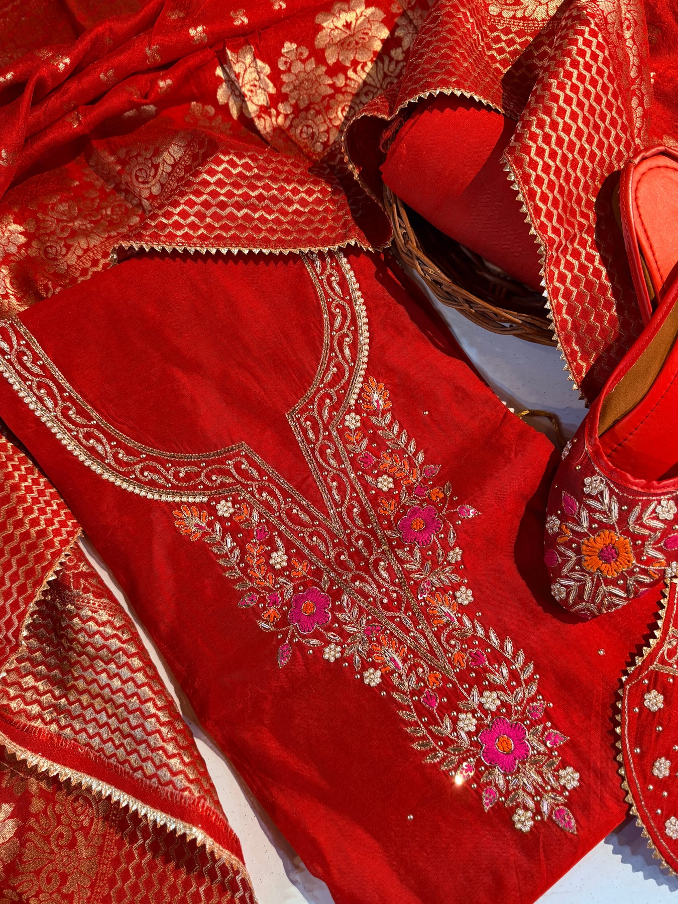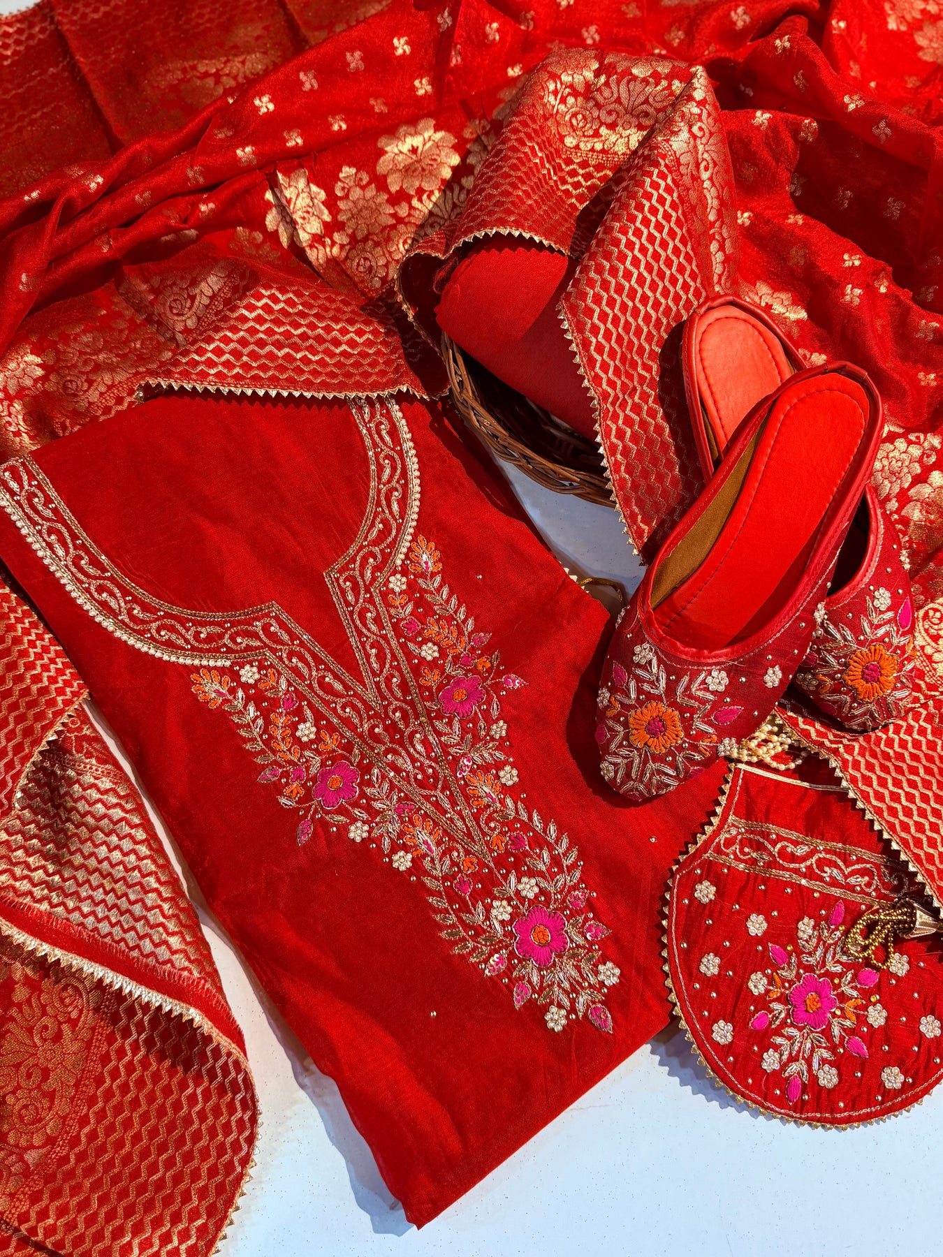 Elevate your celebration style with this sophisticated party ensemble. This premium collection combines an exquisitely crafted potli suit with coordinated footwear, designed for the discerning guest. The potli detailing adds refined elegance to traditional silhouettes, while the included footwear ensures a polished, coordinated look from head to toe. Perfect for weddings, festivals, and special occasions, this curated set delivers effortless glamour without the styling stress. Experience the confidence that comes with a thoughtfully coordinated outfit.