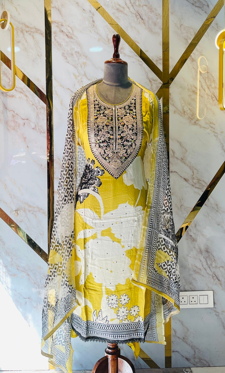 Shirt :-  47inch(approx)Bottom:-.2.60”(approx) Duppta:-2.25mtr(approx)