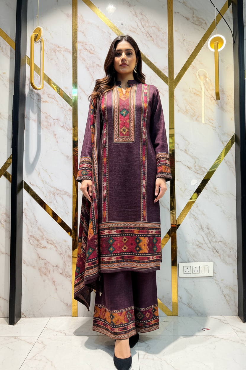 Embrace the essence of Himalayan craftsmanship with this premium Kullu ready-made suit, expertly tailored for the coldest seasons. Woven from traditional wool blends, this ensemble delivers exceptional warmth without compromising on style. The intricate patterns reflect authentic Kullu weaving heritage, while the structured fit ensures a polished appearance. Perfect for those who appreciate quality fabrics and timeless design, this suit transitions seamlessly from formal occasions to casual winter gatherings. Experience the comfort of natural fibers combined with the sophistication of traditional Indian textile artistry.