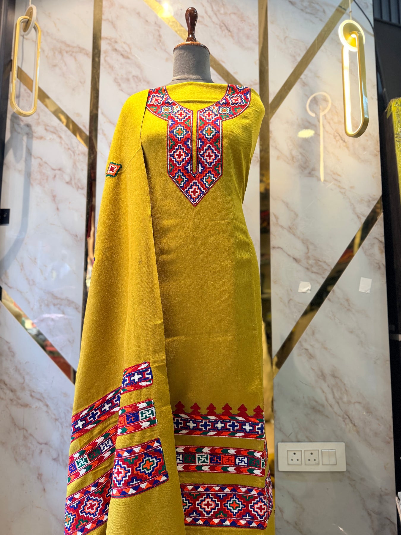 This Pure winter Kinnauri suit is handmade from high-quality fabrics, making it both durable and stylish. Its unique design offers maximum warmth in cold weather conditions, with timeless appeal. Crafted with care and attention by experts, this suit is a perfect choice when you need to dress with confidence for any occasion.
