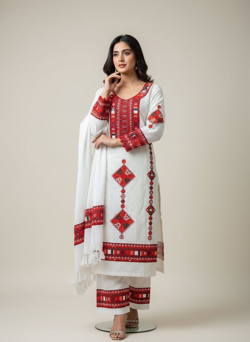 This Pure winter Kinnauri suit is handmade from high-quality fabrics, making it both durable and stylish. Its unique design offers maximum warmth in cold weather conditions, with timeless appeal. Crafted with care and attention by experts, this suit is a perfect choice when you need to dress with confidence for any occasion.