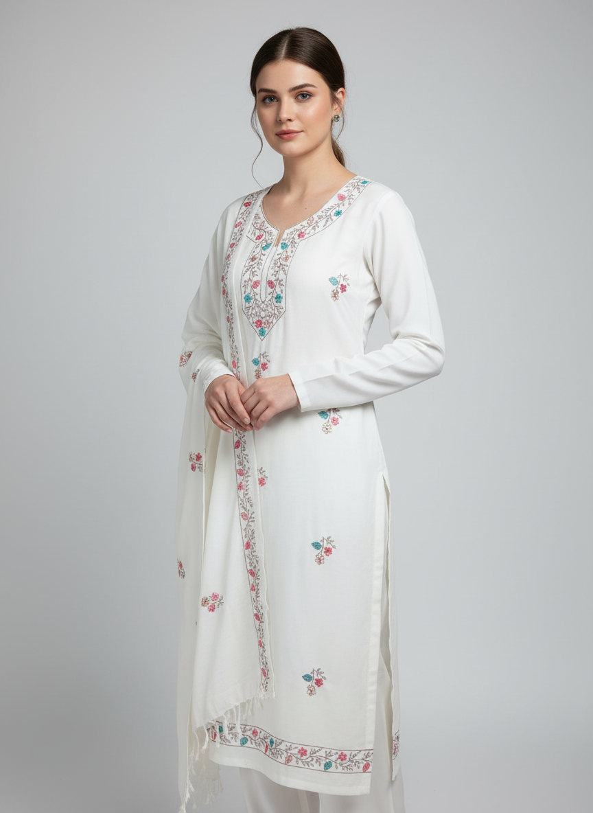 beautiful hand made embroidery 🧵 bottom:-all over Stoll :-Woolen with hand made embroidery 🧵
