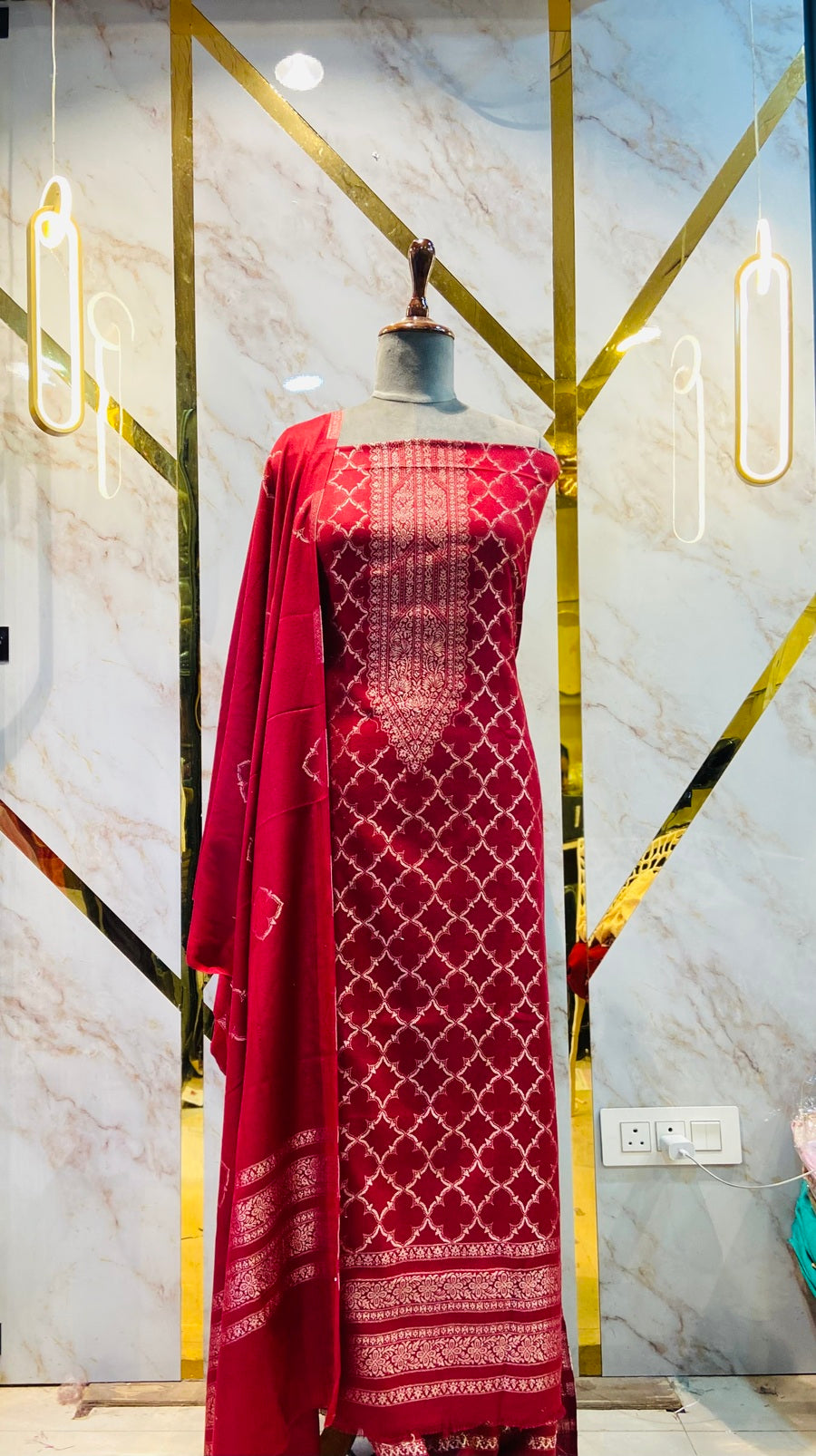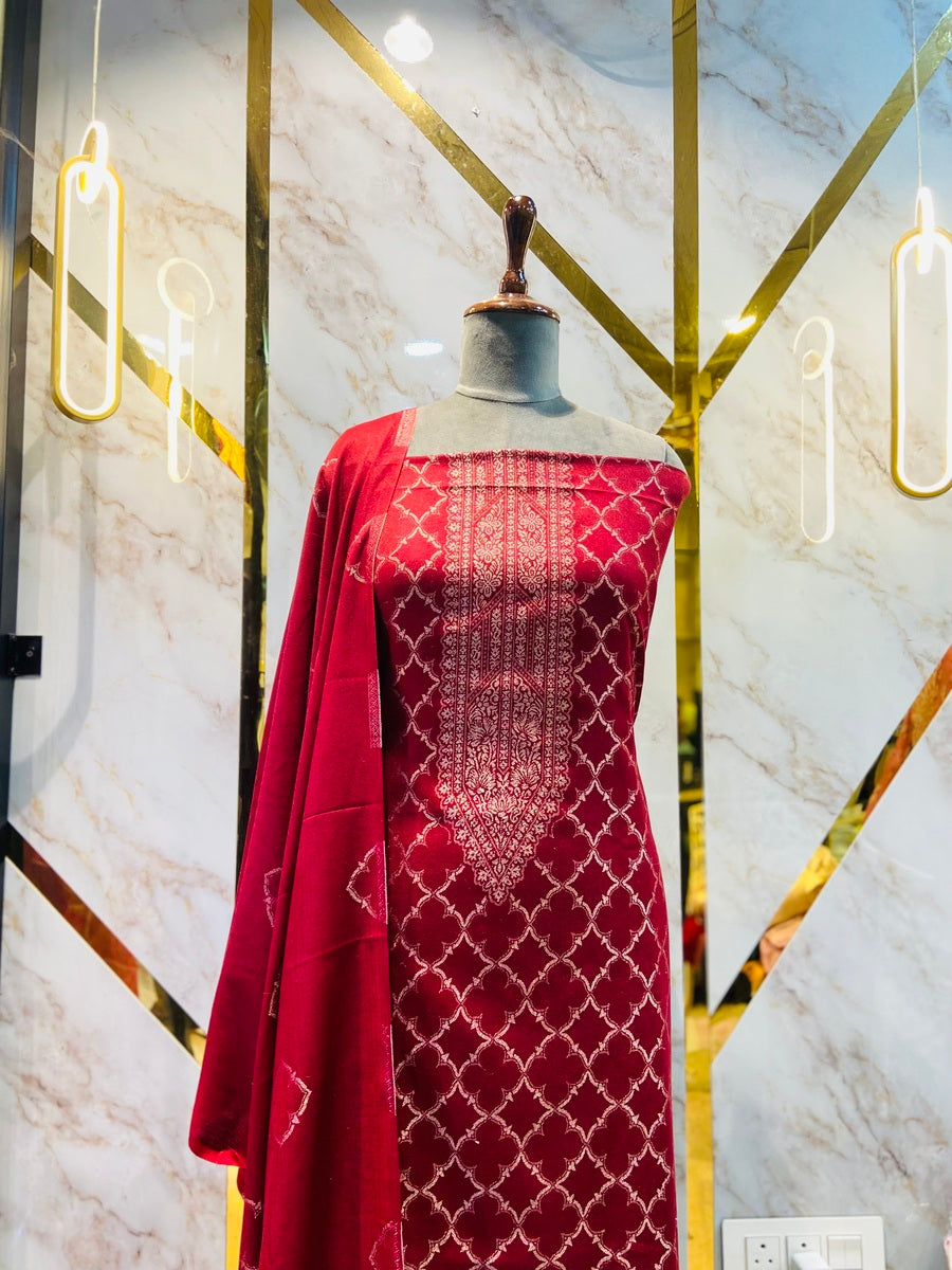 Stay warm and stylish this winter in this exquisite hand-made Premium Winter Kani Suit. Crafted from 100% powerloom fabric, this luxurious suit wraps you in comfortable warmth without sacrificing style. Perfect for any occasion.