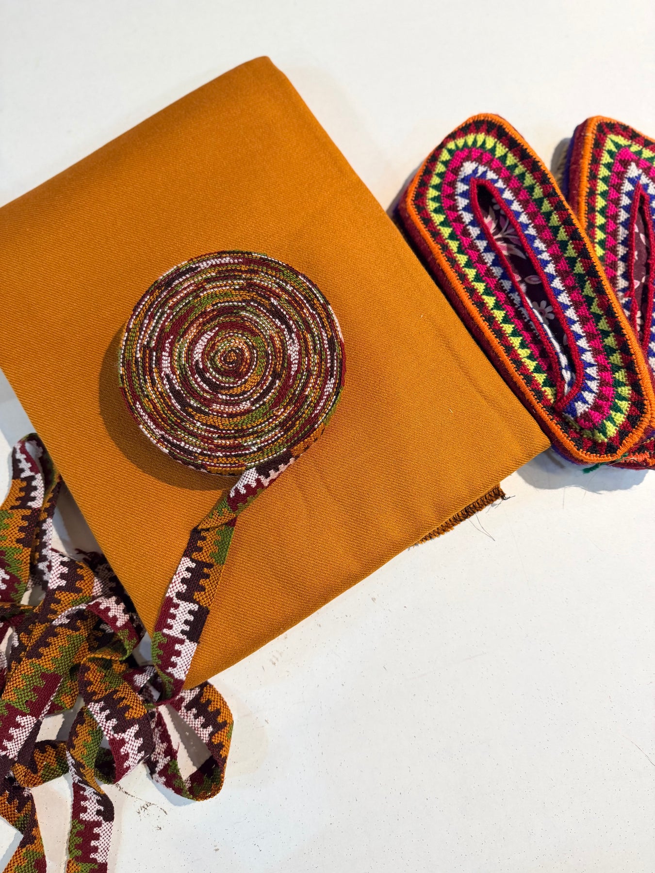 Elevate your traditional wardrobe with this exceptional combo package featuring premium all-over woolen suit fabric paired with authentic Kullu Patti trim. This curated set includes 4.5 meters of high-quality woolen fabric perfect for crafting elegant suits, complemented by 3 meters of traditional Kullu Patti border that adds distinctive regional character to your garments. The inclusion of a complimentary stoll enhances the complete ensemble, making this an outstanding value for those seeking authentic, quality textiles. Ideal for creating sophisticated traditional wear that combines comfort with cultural elegance.